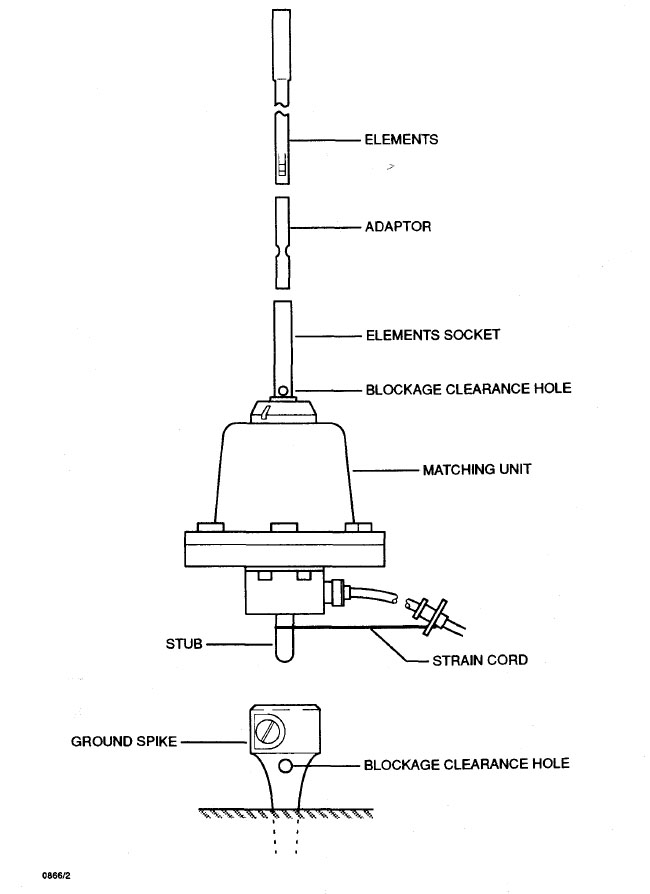 The Ground Spike antenna is designed to cover the frequency range of 30Mhz-76Mhz at a power rating of 25 watts. It does this by increasing or decreasing the number of vertical elements fitted into the matching section.